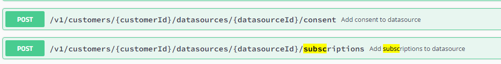 The page shows a list of available subscriptions and consents per subscription.