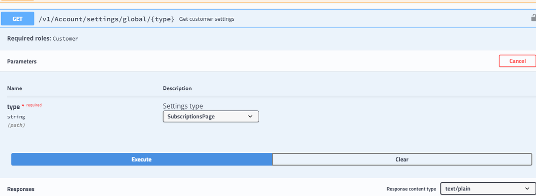 1Get customer settings: 2GET /v1/Account/settings/global/{type} 3 4Save customer settings: 5PUT /v1/Account/settings/global/{type}