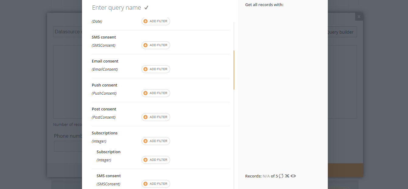 Now consent is applied by default to the datasources that have this feature. When you are running a campaign or creating a job you do not have to add it to the filter, the filter will work automatically when the campaign or job runs.